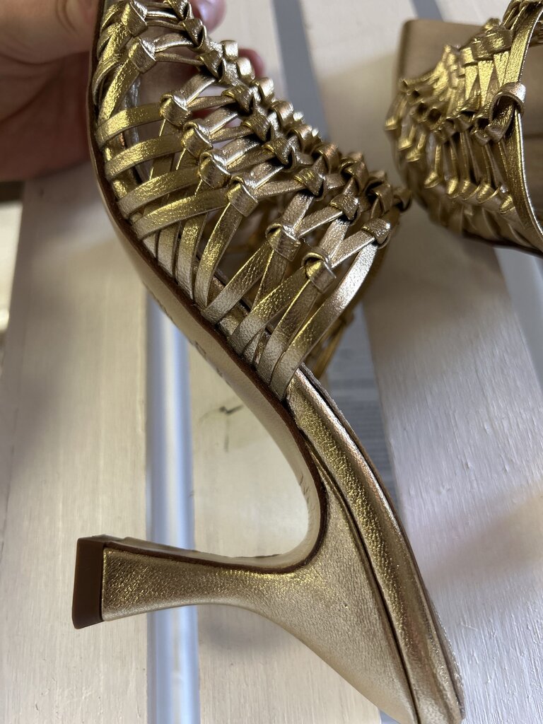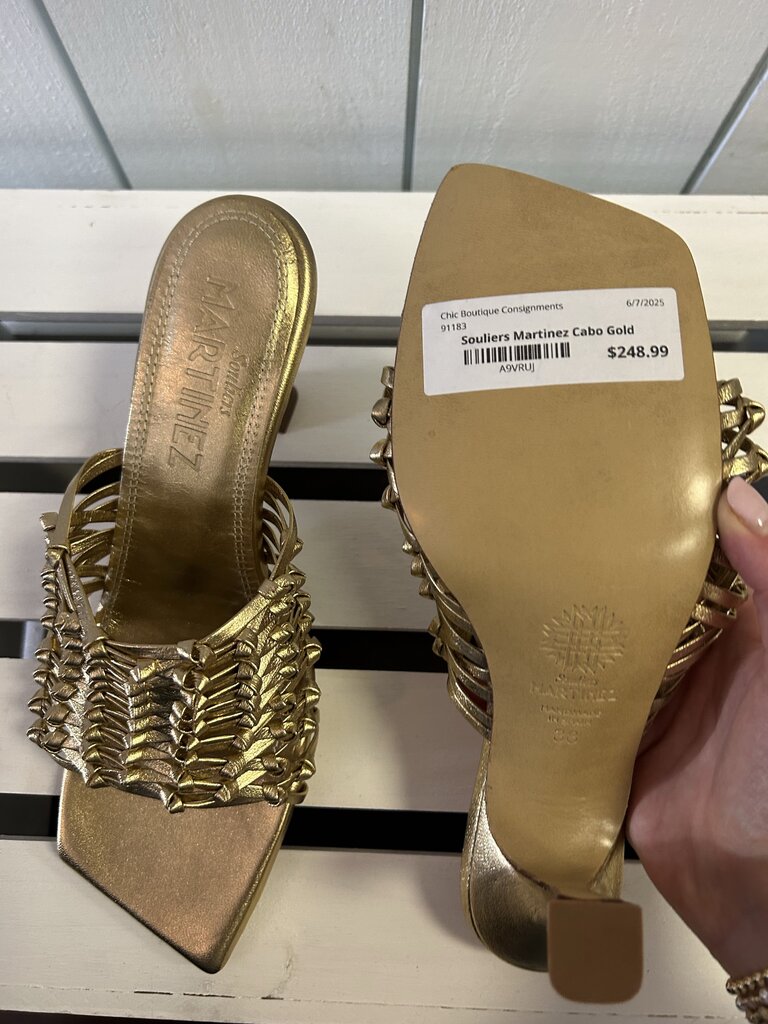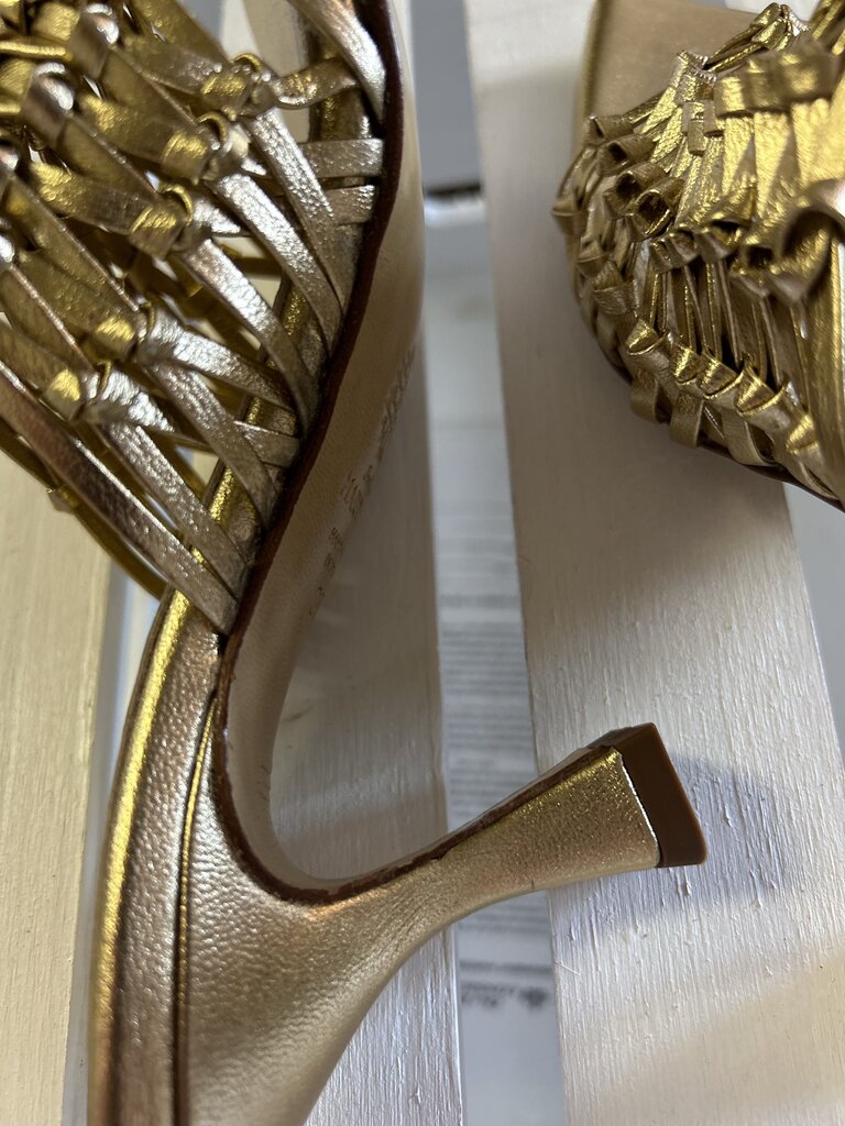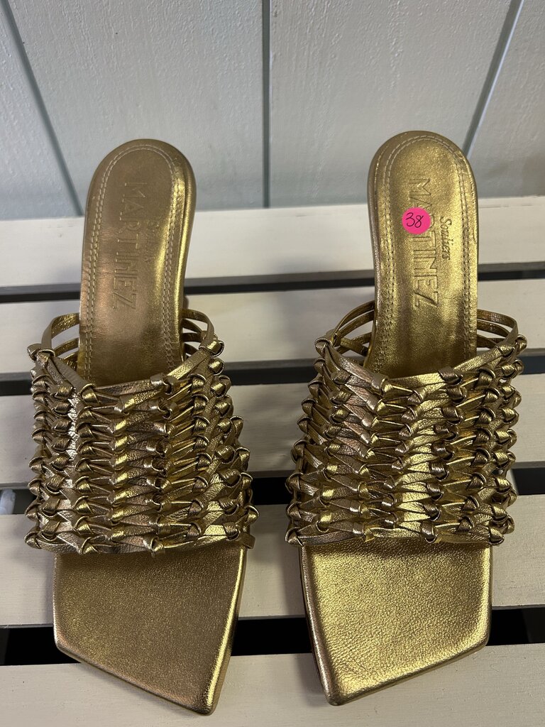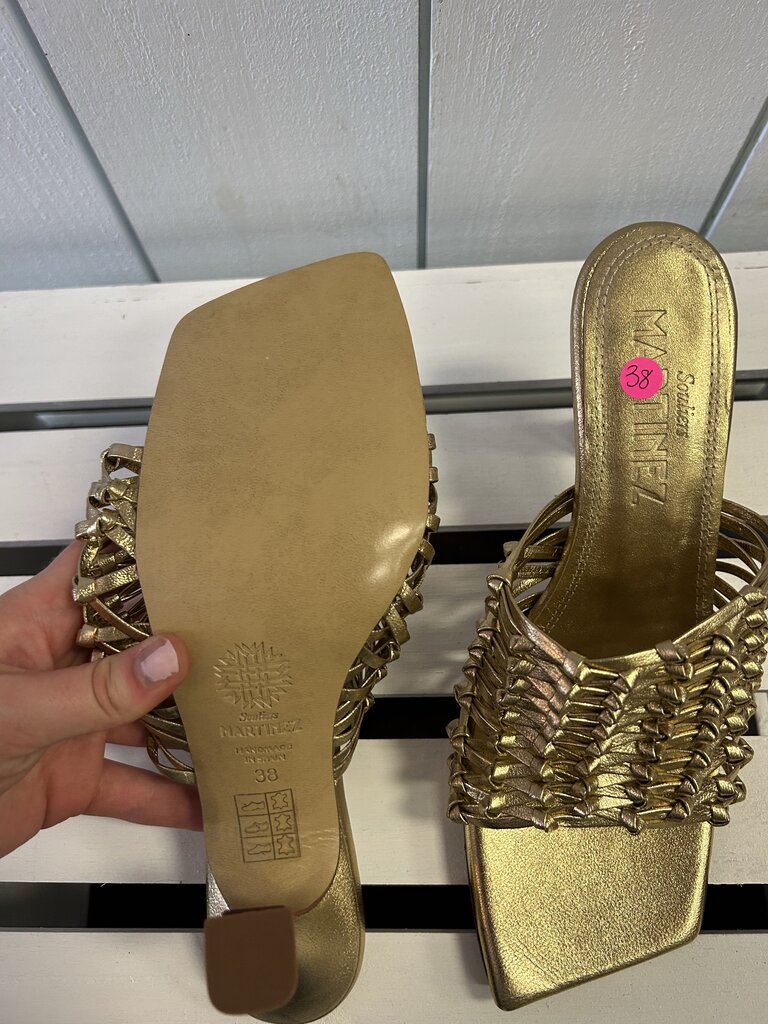 Souliers Martinez Cabo Gold Woven Leather Sandals - Size 38