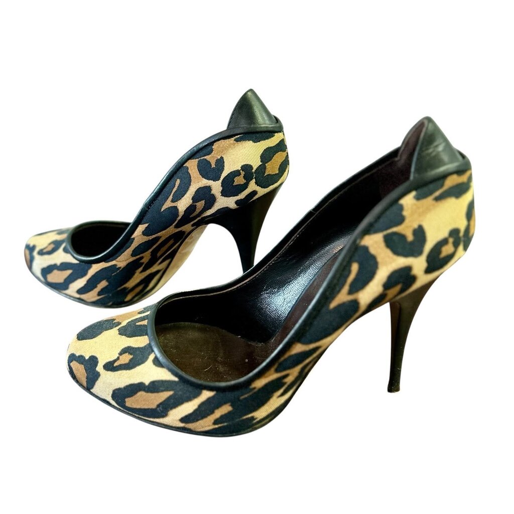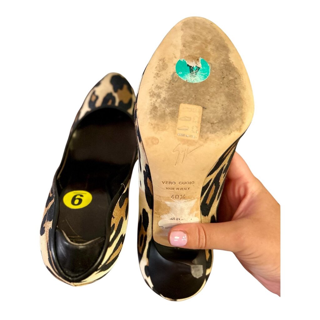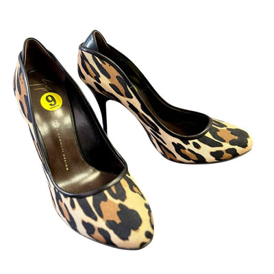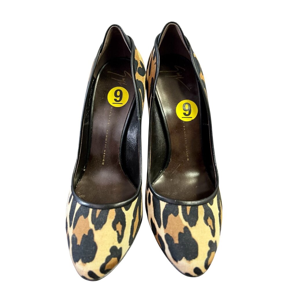 Giuseppe Zanotti Leopard Print Canvas Peep Toe Pumps - Size 9