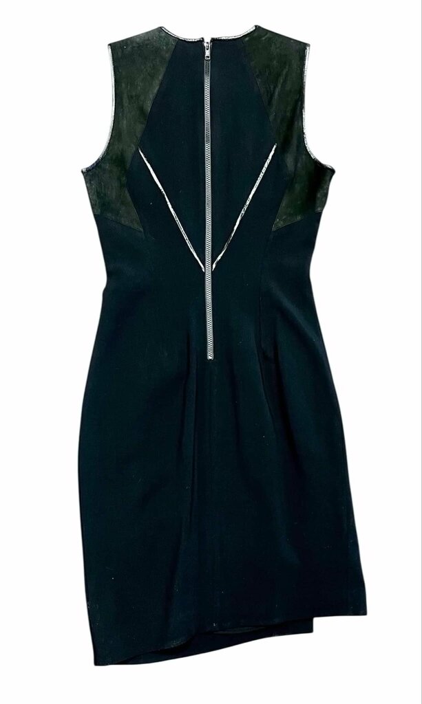 Helmut Lang Angora Black Leather Panel Sleeveless Asymmetric Sheath Dress - Size 6