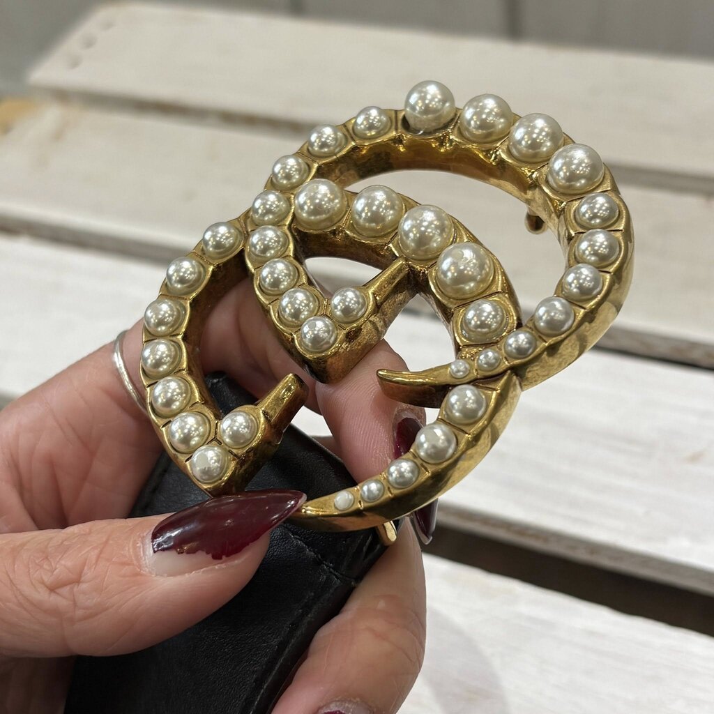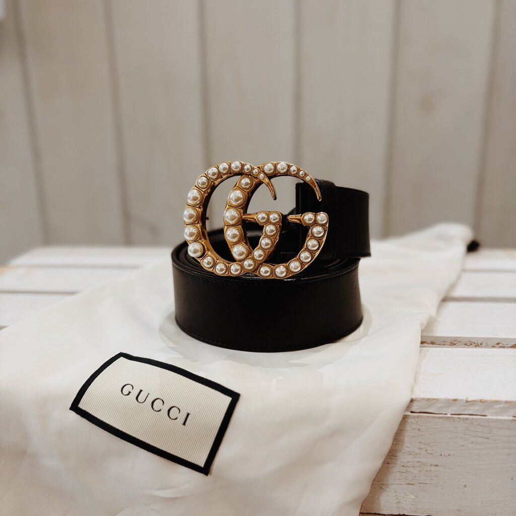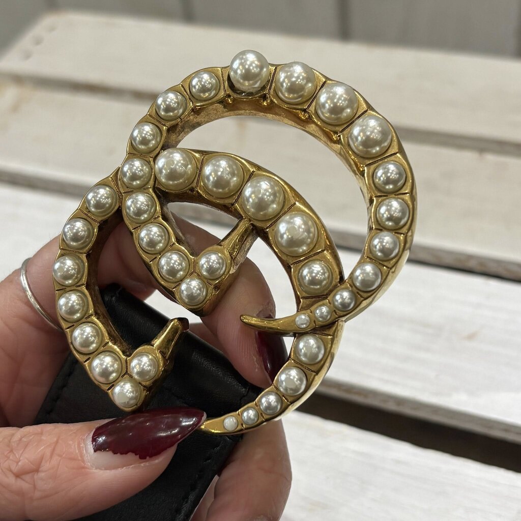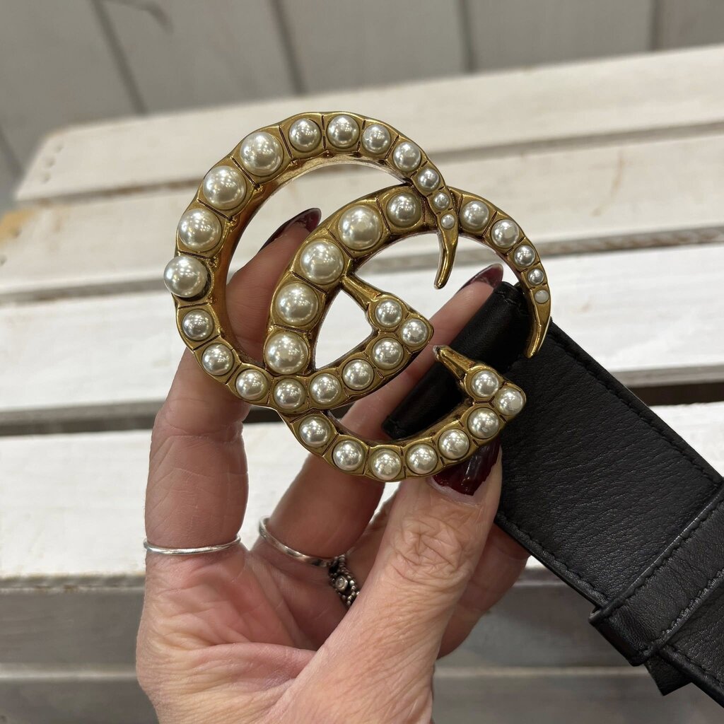 Gucci Faux Pearl Accent GG Marmont Wide Belt - Size 95