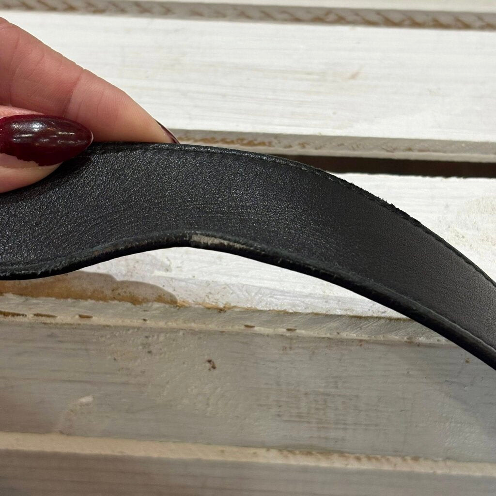 - Please see imperfections - trim wear, some faux pearls chipping, previously altered pearl as shown in last photo, slight wear to back of buckle, slight scratches to leather, etc.