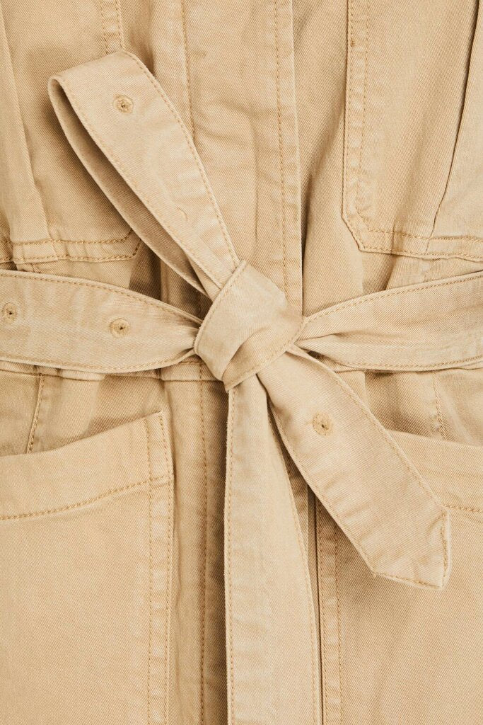 - Designed for a slightly loose fit, use the tie belt to cinch in at the waist
