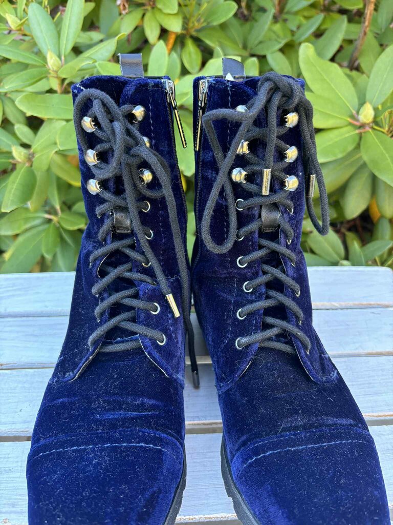 Donald Pliner Ease Blue Velvet Combat Boots - Size 8.5