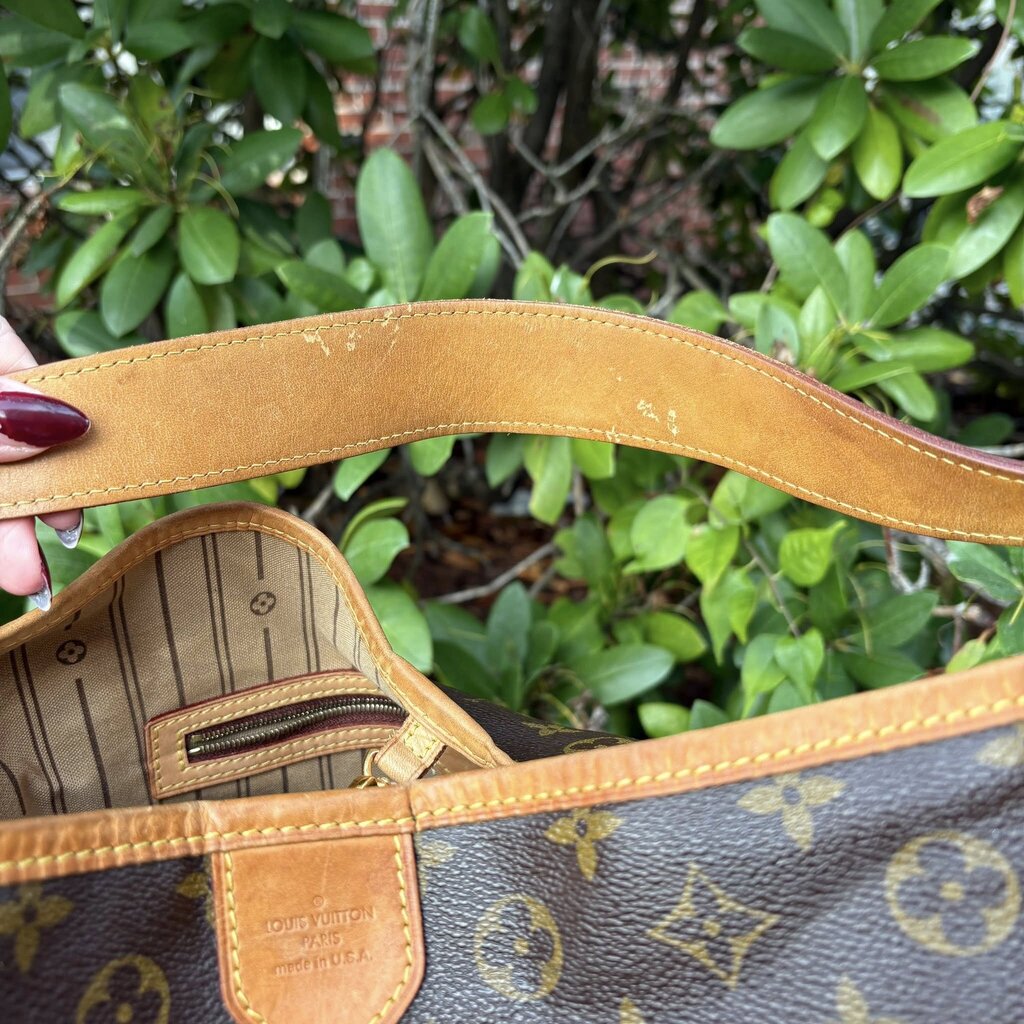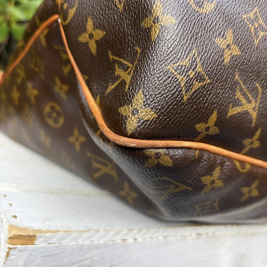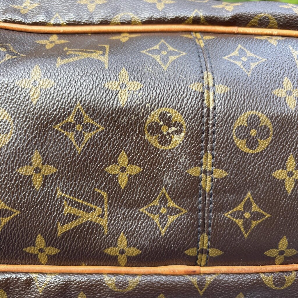 Please see imperfections - Blemishes to coated canvas, wear to leather handles, wear to trim, corner wear, minor scratches to leather trim, heavy interior wear, etc.