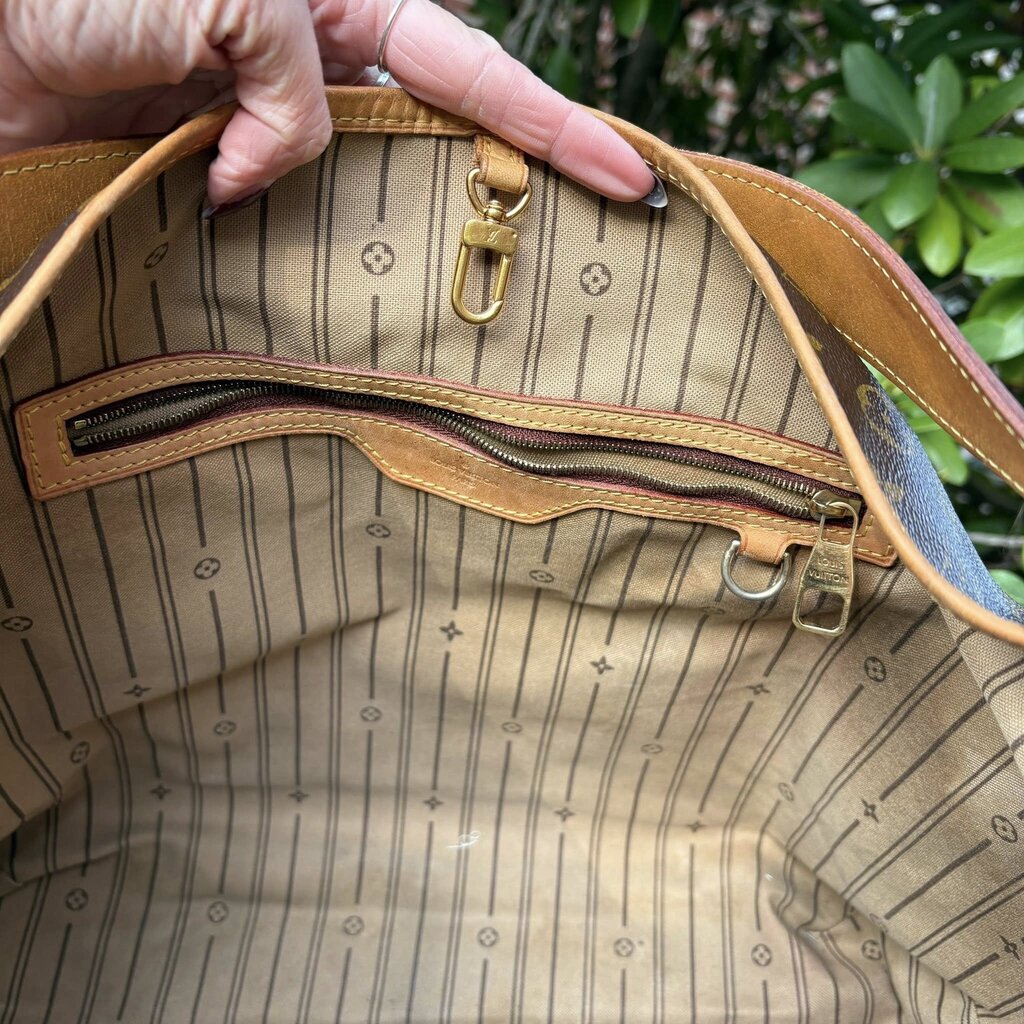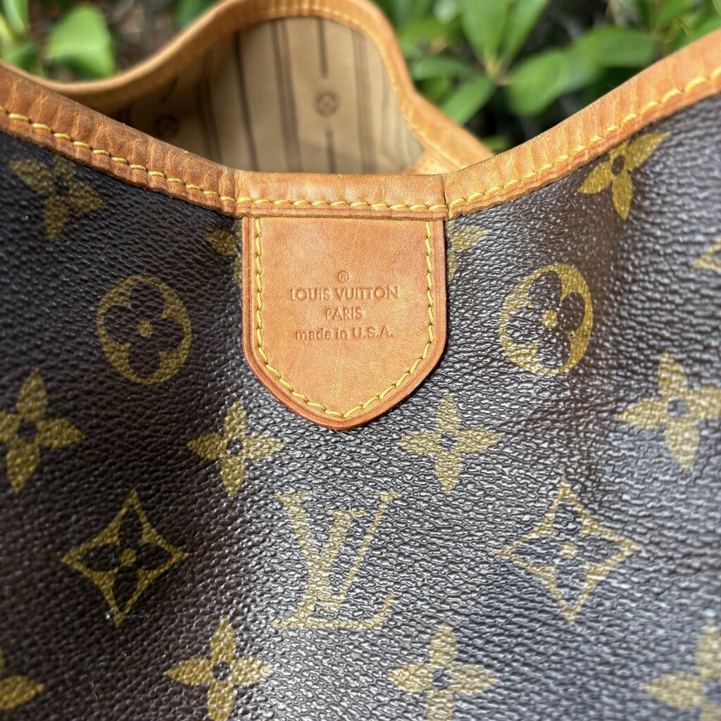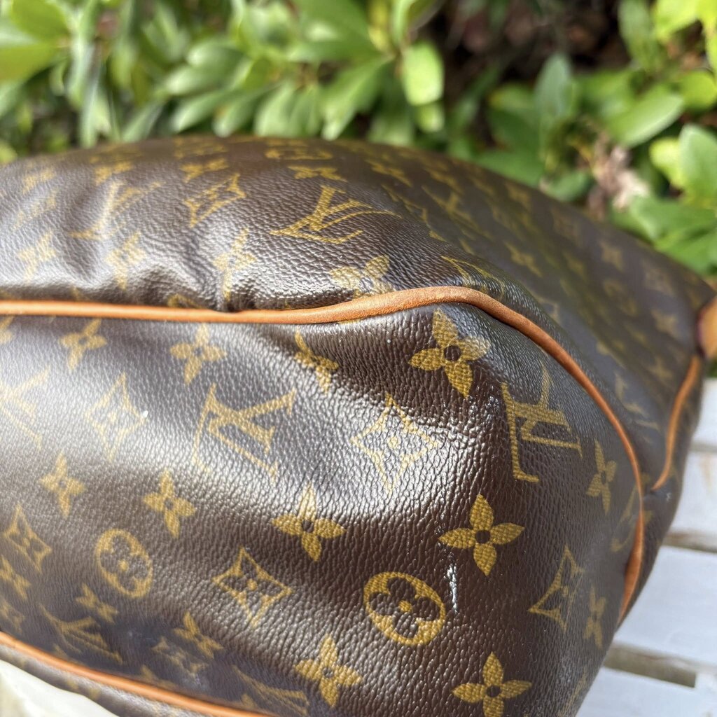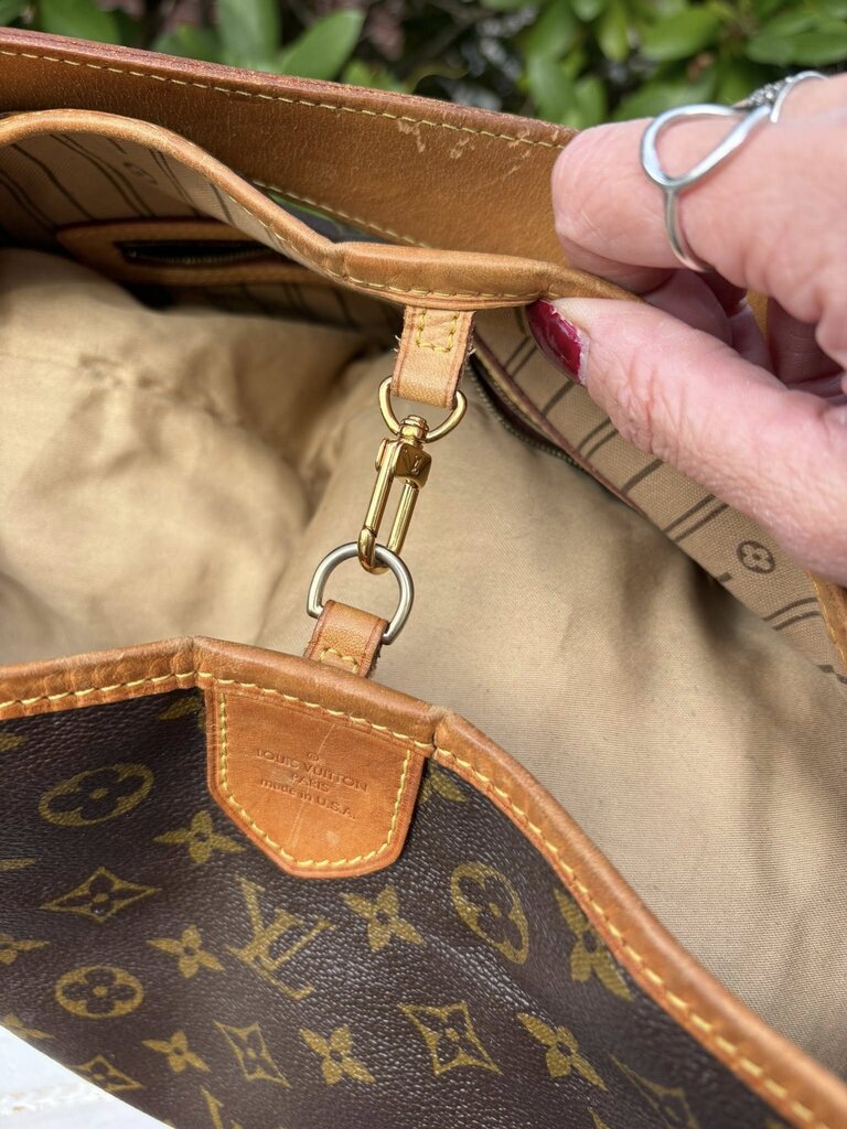 Please see imperfections - Blemishes to coated canvas, wear to leather handles, wear to trim, corner wear, minor scratches to leather trim, heavy interior wear, etc.