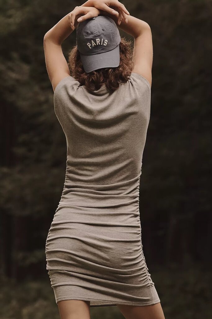 Michael Stars Gia Ribbed Power Shoulder Mini Dress - Size Medium (retailing $138)
