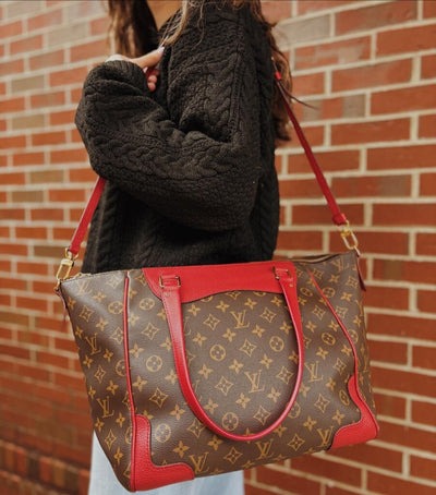- Please see imperfections - slight corner wear, slight hardware tarnish, creasing to leather in areas.