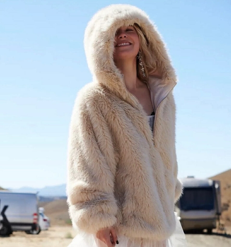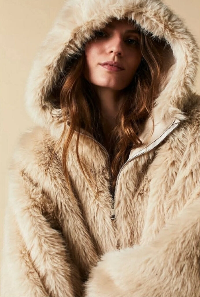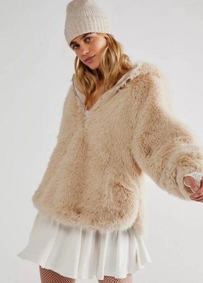 Free People Piper Pullover Faux Fur Quarter Zip Jacket - Size Small