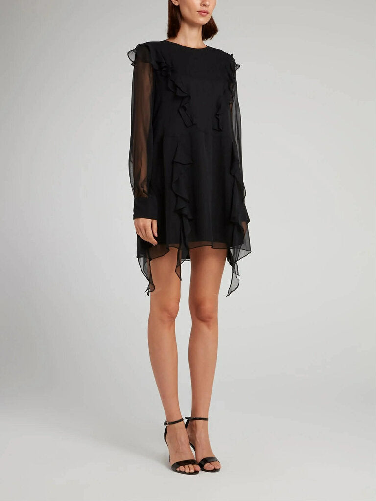 Thomas Wylde Ruffled Mini Dress In Black - Size Small