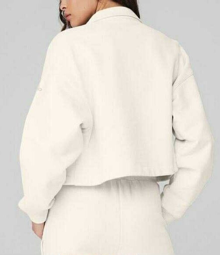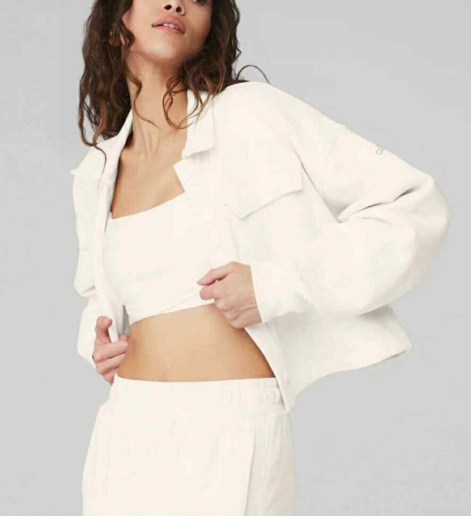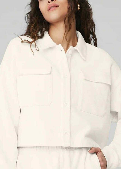 Alo Yoga Renown Cropped Button Up Shacket in Ivory - Size Medium