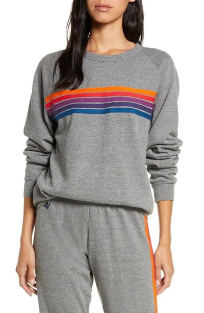 Aviator Nation 5-Stripe Crewneck Sweatshirt in Heather/Purple Orange - Size Large