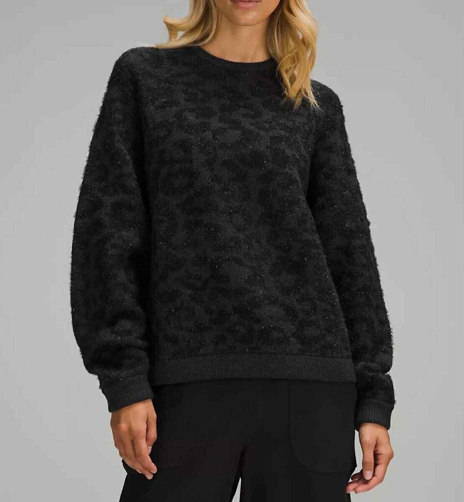 Lululemon Wool-Blend Jacquard Sweater Knit Leopard Graphite Grey Black - Size Medium