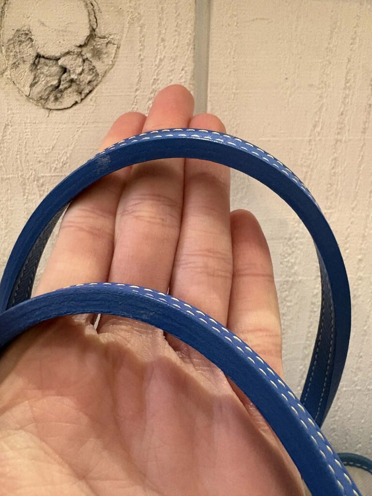 • Please see photos for wear: Blemish on shoulder strap, creasing and relaxing throughout, pattern blemish on interior snap pouch, blemish to upper trim, etc.