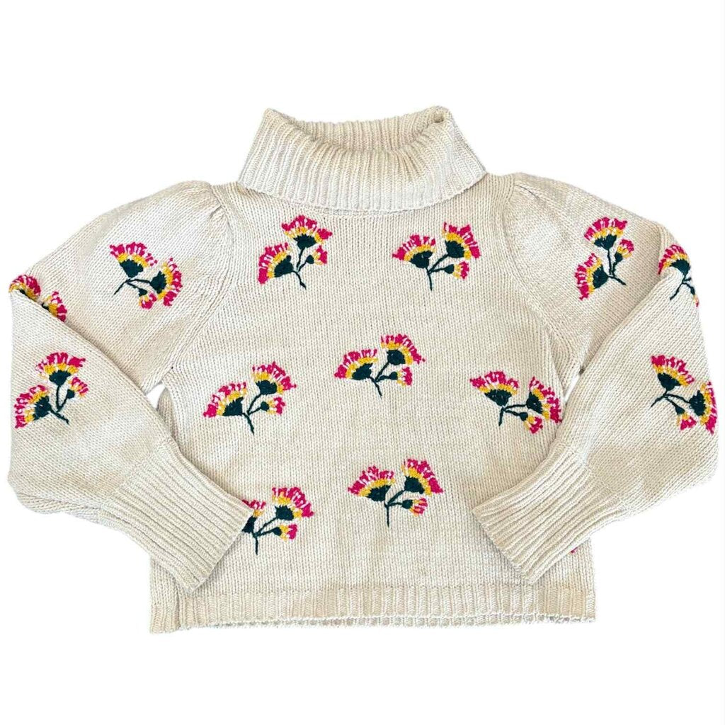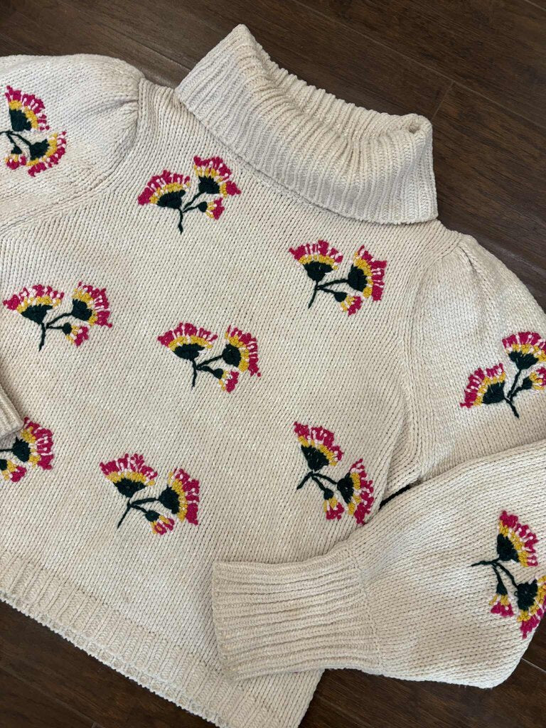 Allison NY Embroidered Floral Turtleneck Sweater - Size Medium