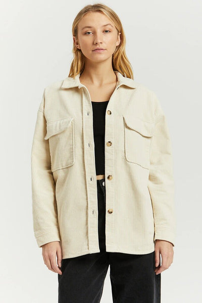 Dr Denim Mona Overshirt in Off White Cord - Size Large
