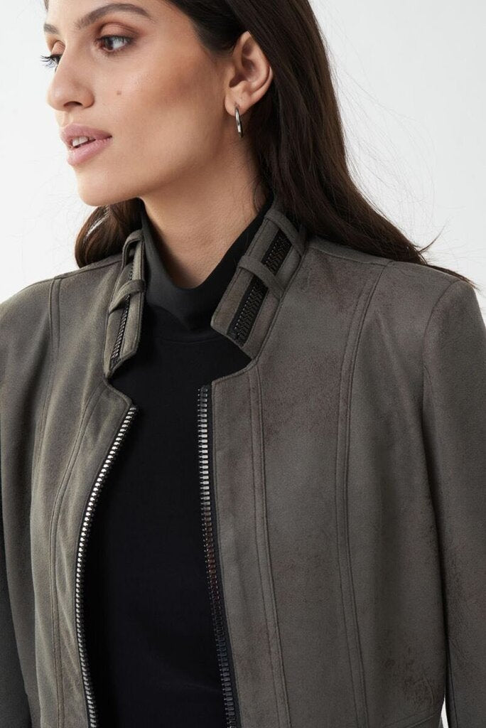 Joseph Ribkoff Avocado Faux Suede Jacket (Retails for $220) - Size XS