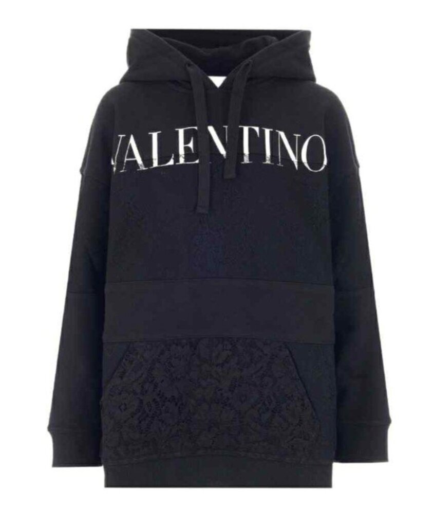 Valentino NWT Logo-Print Lace Insert Hoodie - Size XS