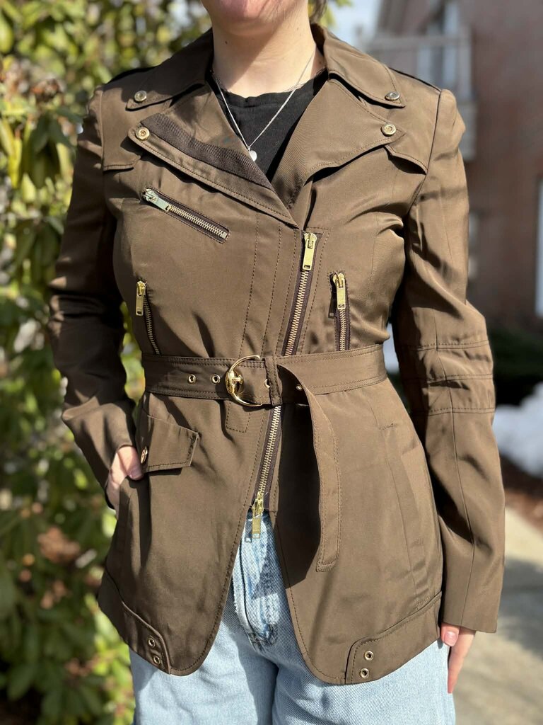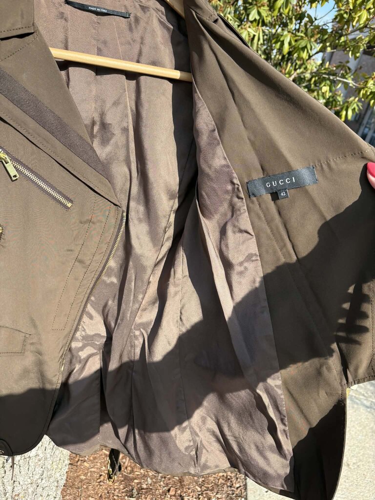 Gucci Asymmetrical Zipper Belted Jacket - Size 42