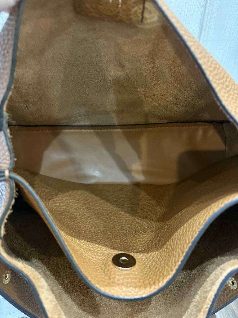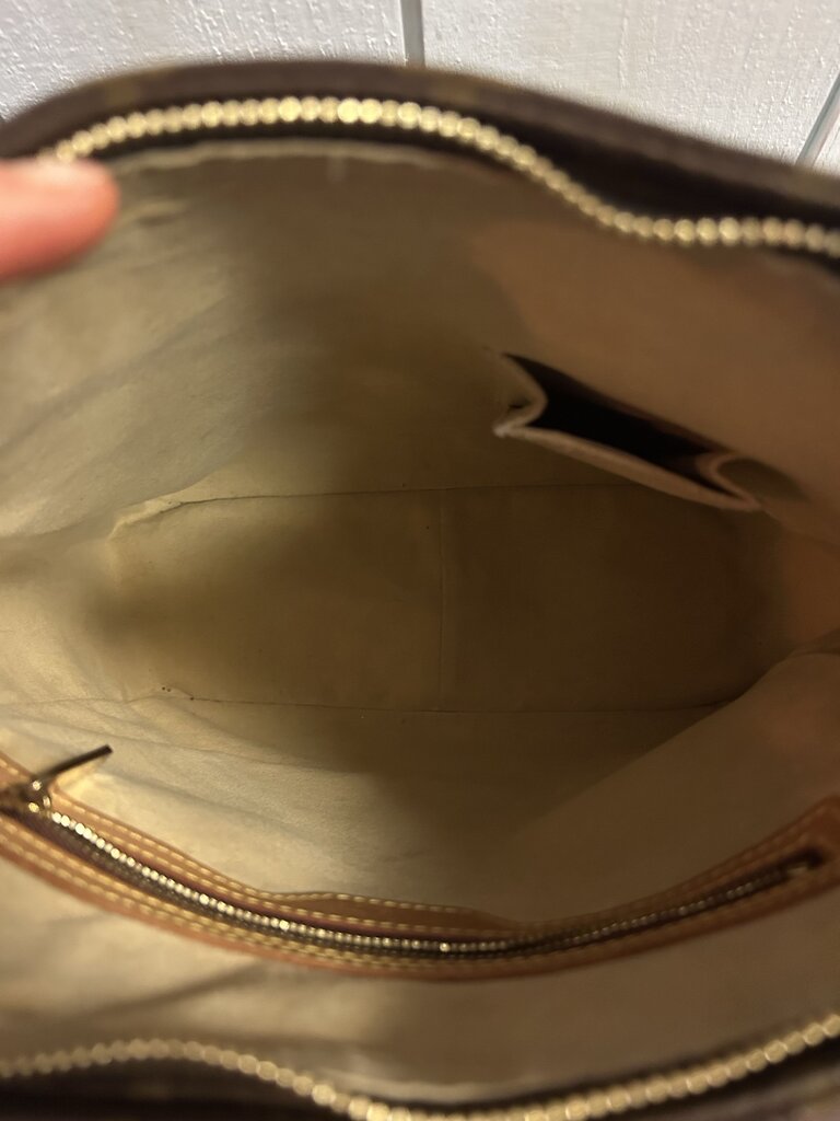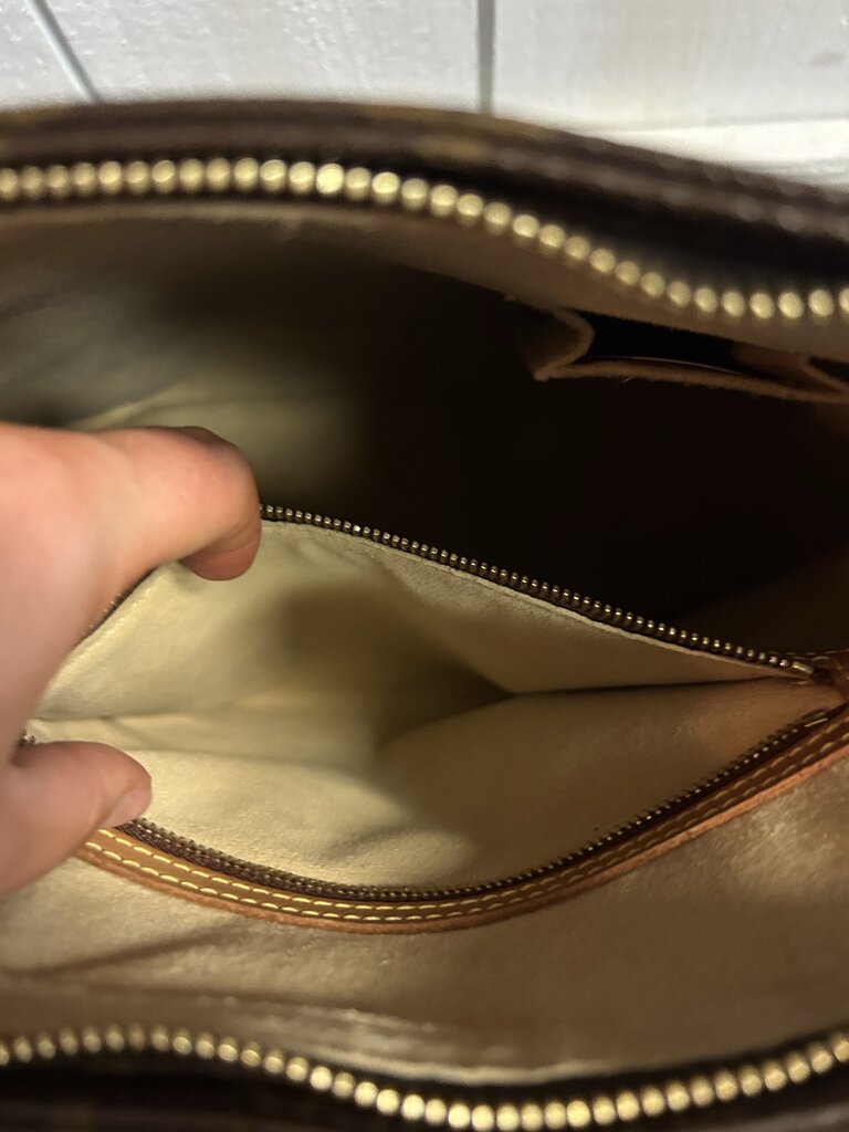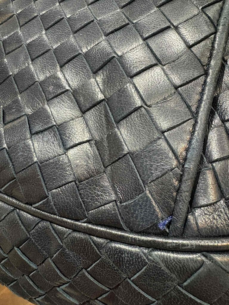 Please see photos for imperfections: Corner wear, tarnishing to hardware, blemishes to exterior, creasing to exterior leather, staining and wear to interior, etc.