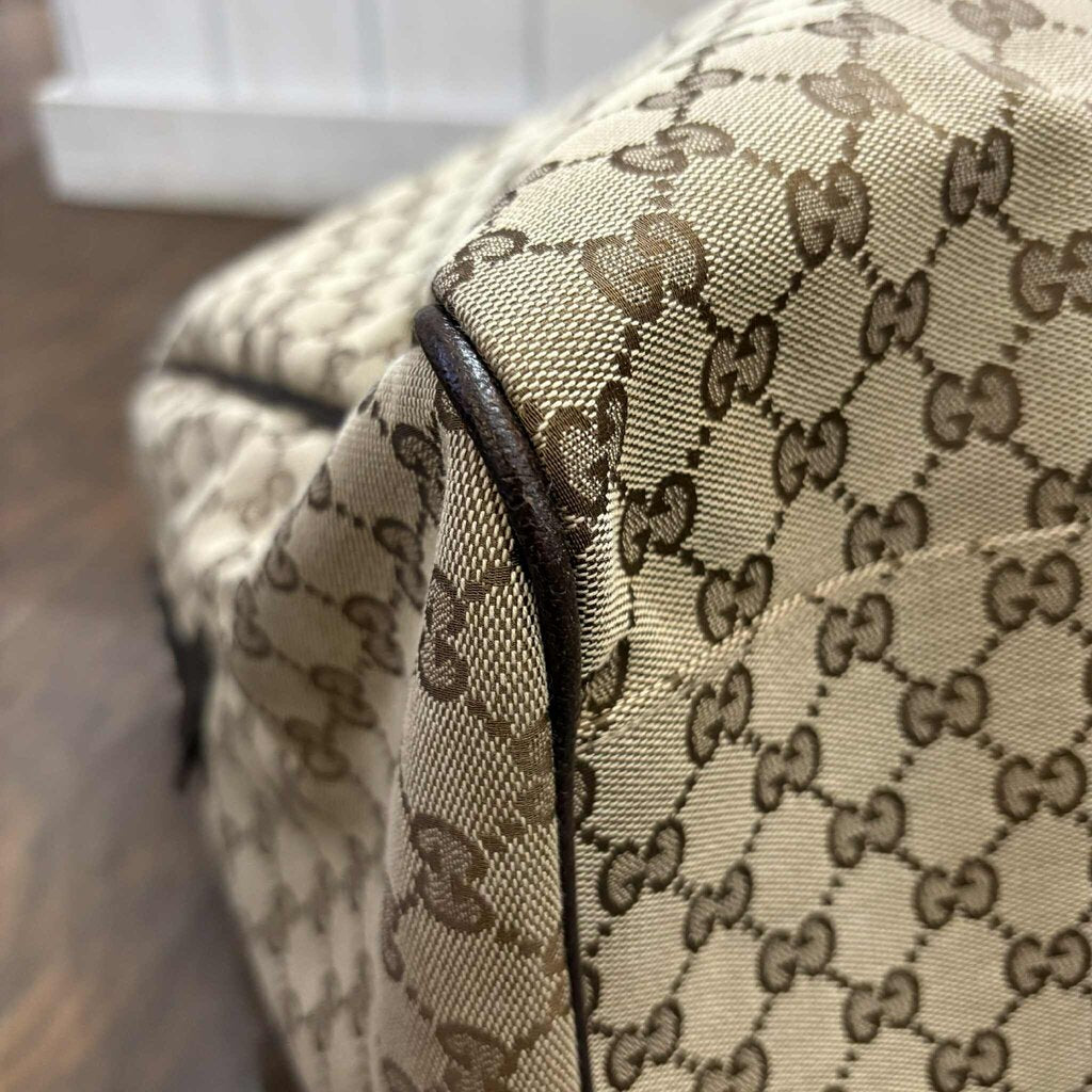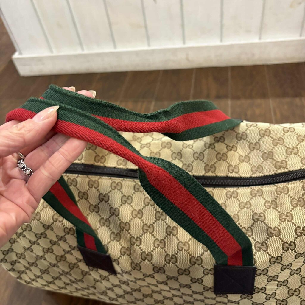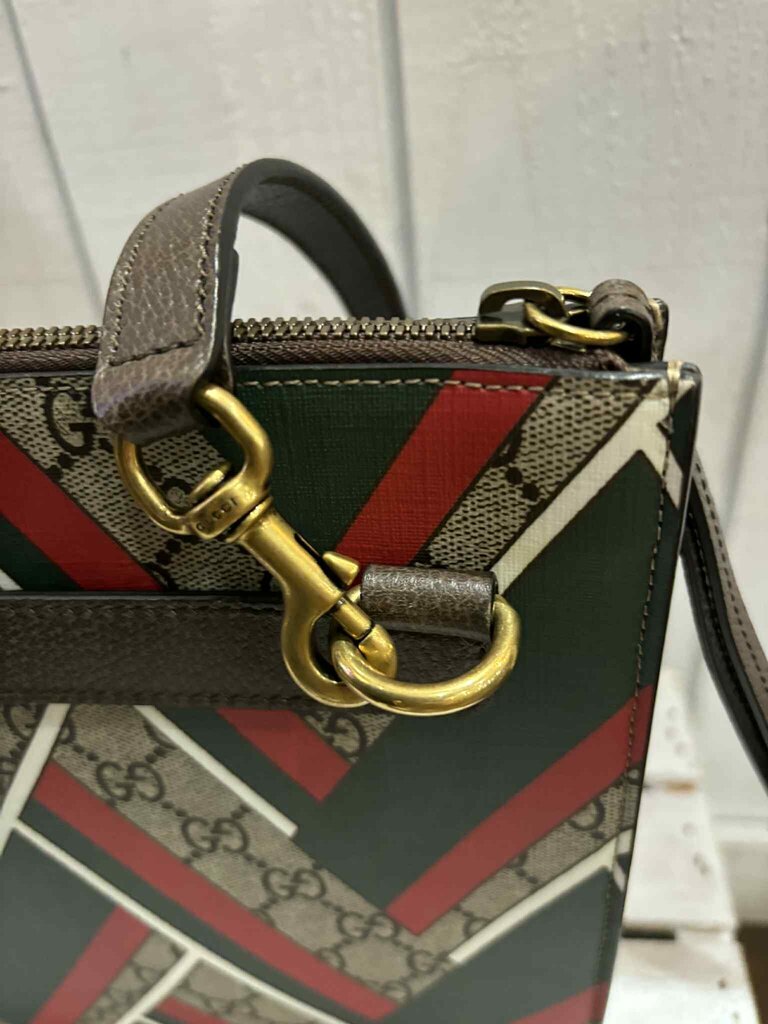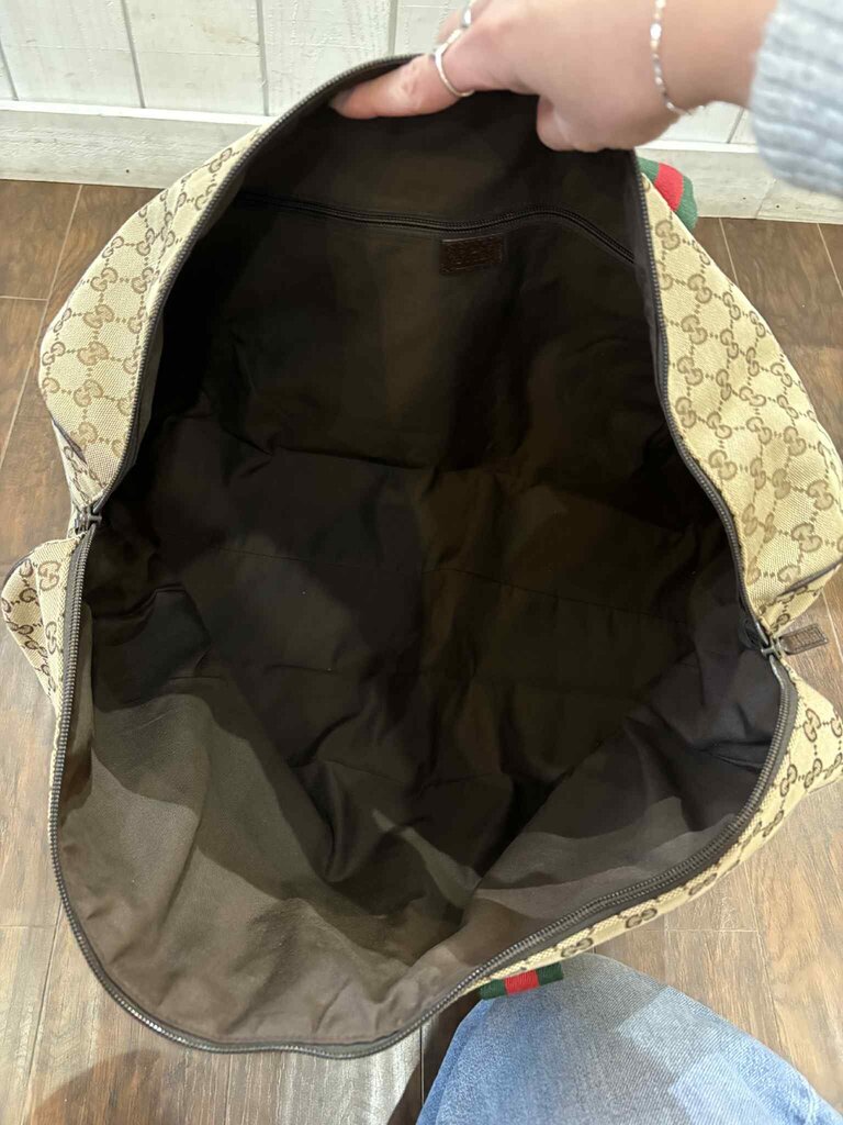 Please see photos for imperfections: Corner wear, tarnishing to hardware, blemishes to exterior, creasing to exterior leather, staining and wear to interior, etc.
