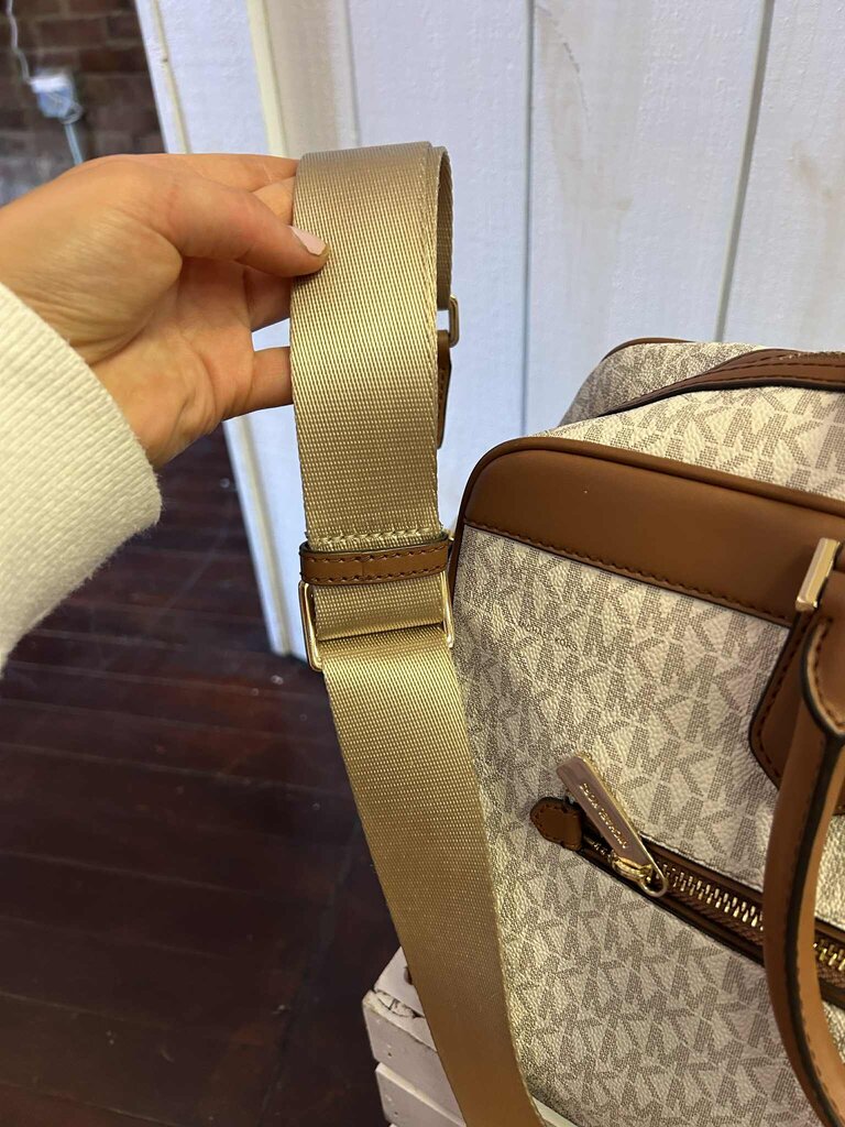 See photos for depiction of wear - Wear to bottom corner piping and top corners, some scratching and wear to leather canvas, Staining to crossbody strap