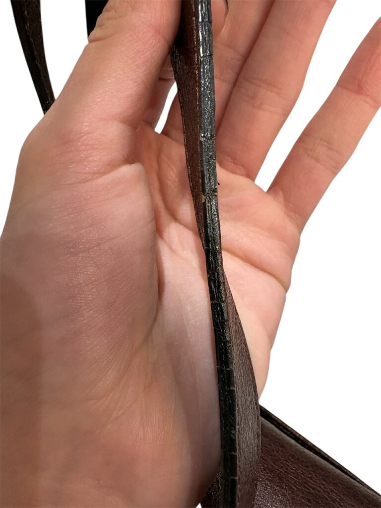 • Please see imperfections throughout - slight wear to hardware, small blemishes throughout leather, slight cracking to strap, creasing to leather