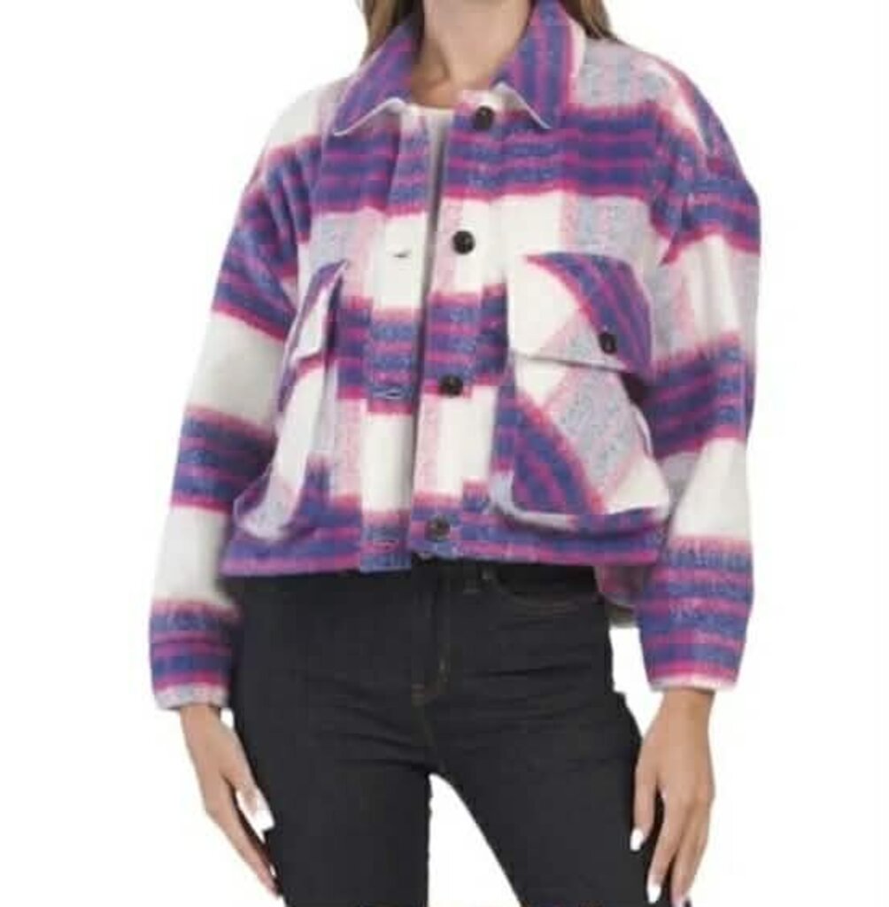 Blank NYC Cropped Plaid Jacket in Prime Time - Size Large(Retails $148)