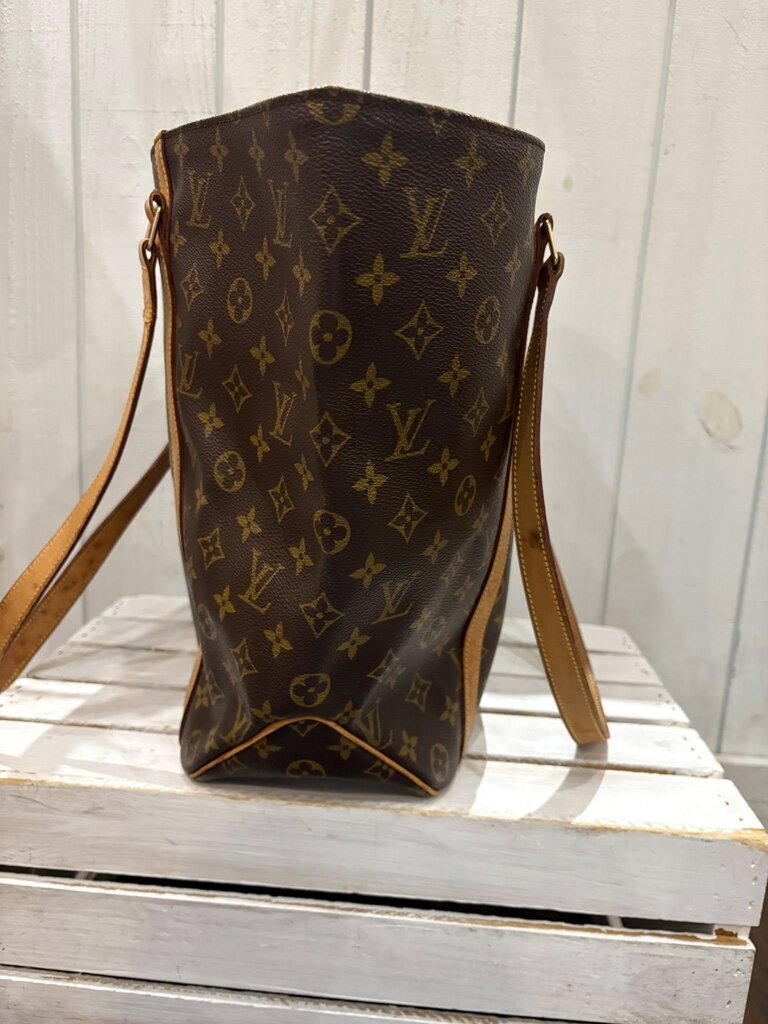 Please see imperfections - wear to strap, wear to leather trim, small blemishes to interior, bottom wear, blemishes to coated canvas areas, tarnishing to hardware.