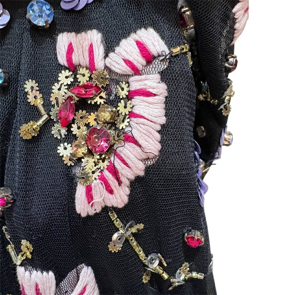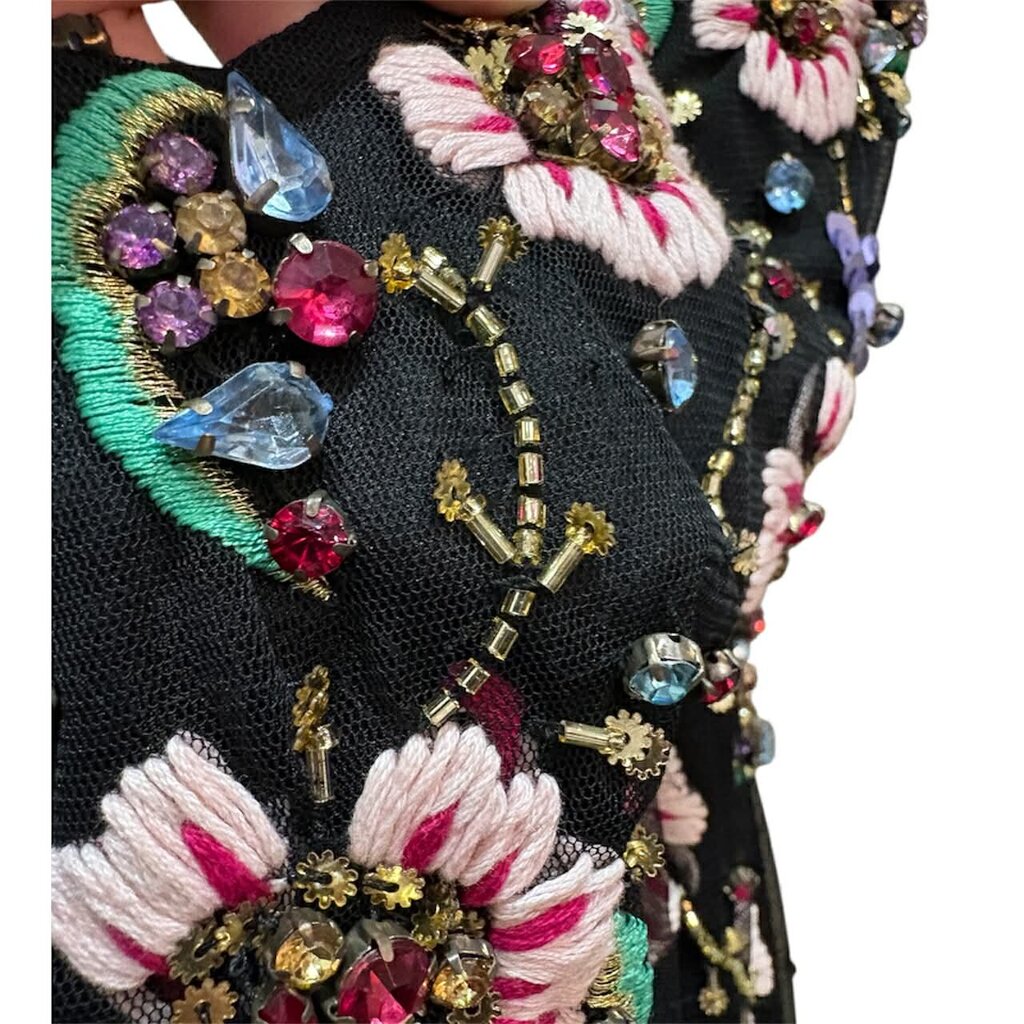 • Sheer jewel-embellished overlay