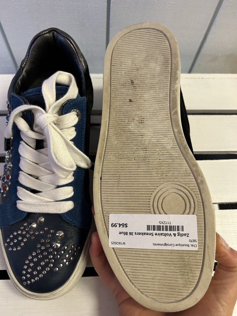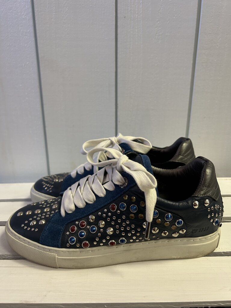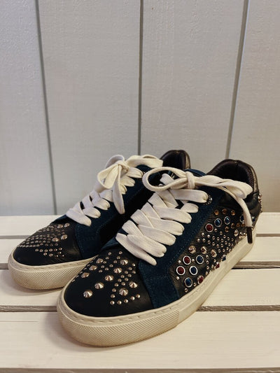 Zadig & Voltaire Suede and Leather Embellished Low Top Sneakers - Size 36