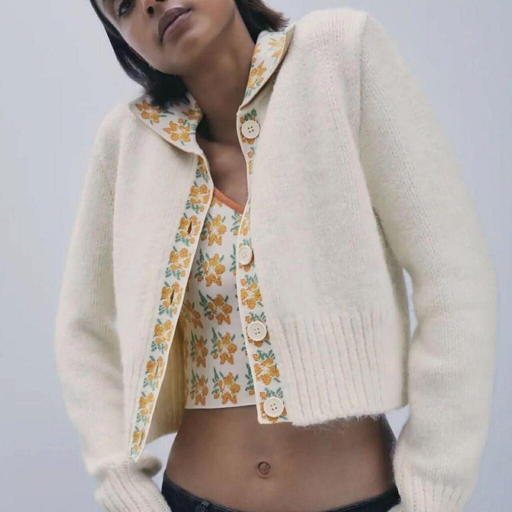 Zara NWT Contrasting Floral Knit Cardigan - Size Large