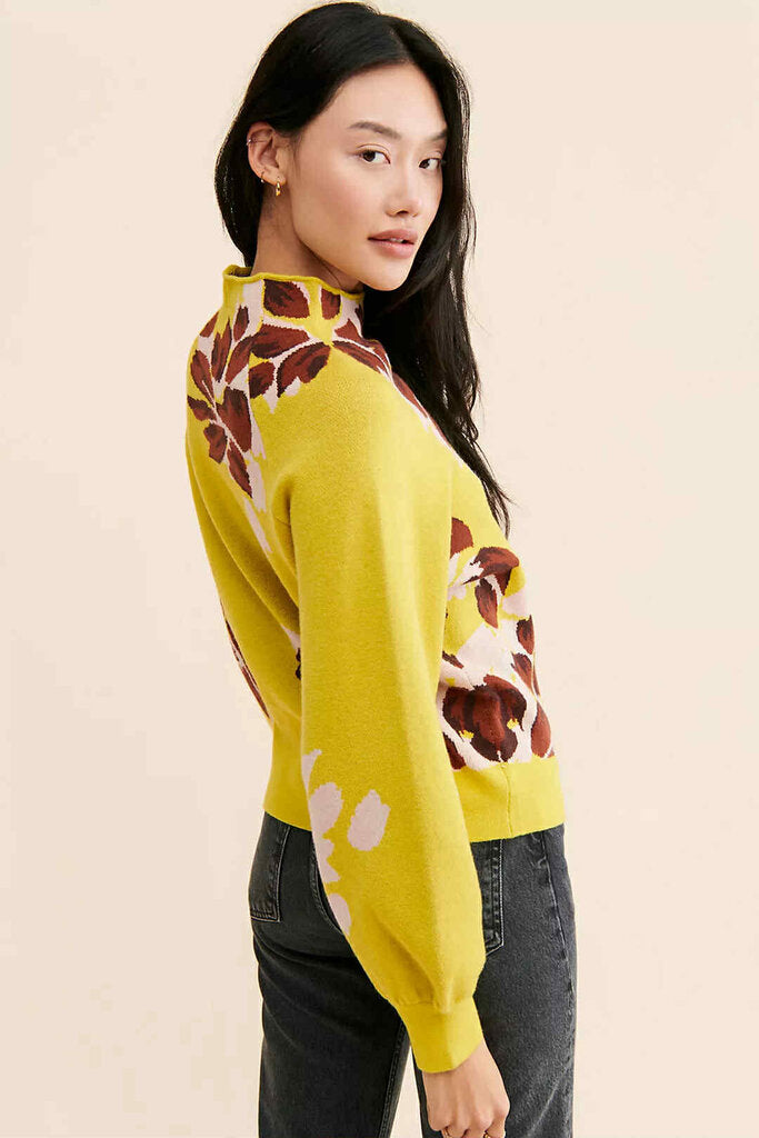 Anthropologie Floral Mock Neck Sweater in Yellow - Size XS