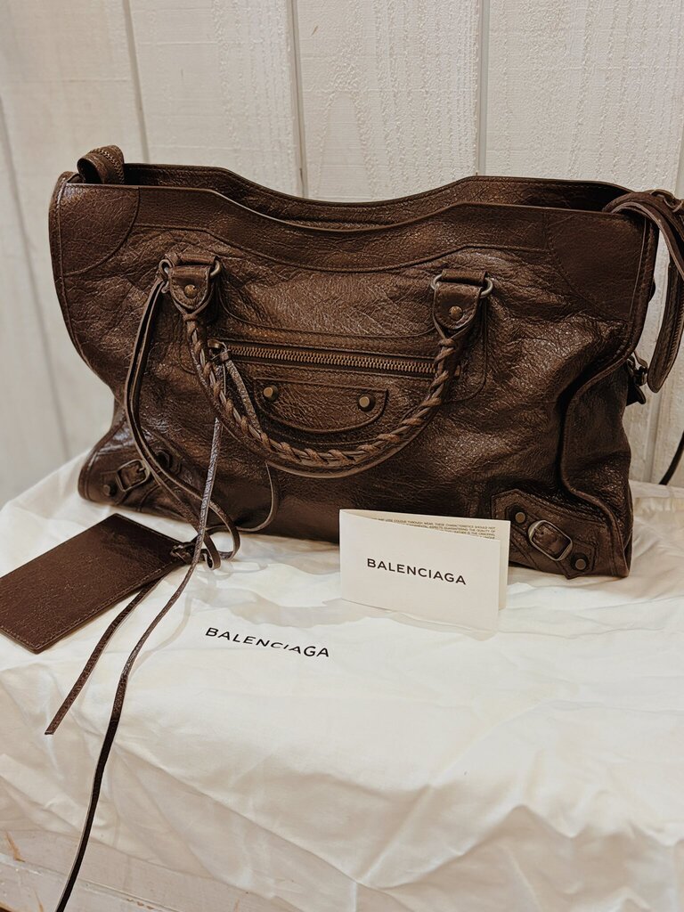 [{"id":46943312937199,"title":"Brown","option1":"Brown","option2":null,"option3":null,"sku":"FTL3R3-9259","requires_shipping":true,"taxable":true,"featured_image":{"id":45450515677423,"product_id":9091622338799,"position":1,"created_at":"2025-10-12T13:51:51-04:00","updated_at":"2025-10-12T13:51:53-04:00","alt":null,"width":768,"height":1024,"src":"\/\/www.chicboutiqueconsignments.com\/cdn\/shop\/files\/1760289977667NW3NLL5AP0HJ6SIZ66GJ.jpg?v=1760291513","variant_ids":[46943312937199]},"available":true,"name":"Balenciaga Le City Medium Crinkled Leather Bag - Brown","public_title":"Brown","options":["Brown"],"price":109899,"weight":2268,"compare_at_price":null,"inventory_management":"shopify","barcode":null,"featured_media":{"alt":null,"id":37120477593839,"position":1,"preview_image":{"aspect_ratio":0.75,"height":1024,"width":768,"src":"\/\/www.chicboutiqueconsignments.com\/cdn\/shop\/files\/1760289977667NW3NLL5AP0HJ6SIZ66GJ.jpg?v=1760291513"}},"requires_selling_plan":false,"selling_plan_allocations":[]}]