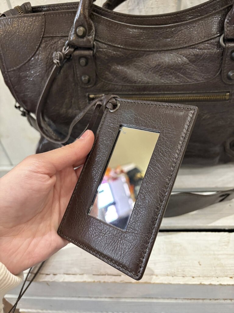 Please see photos for minor imperfections to exterior leather and compact mirror