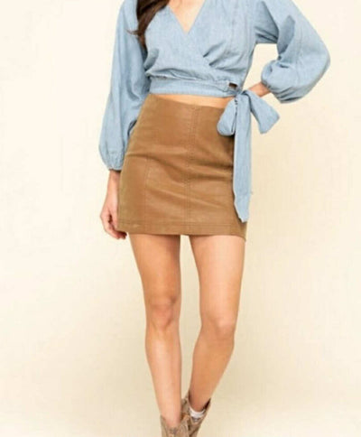 Free People Modern Faux Leather Skirt in Caramel - Size Small