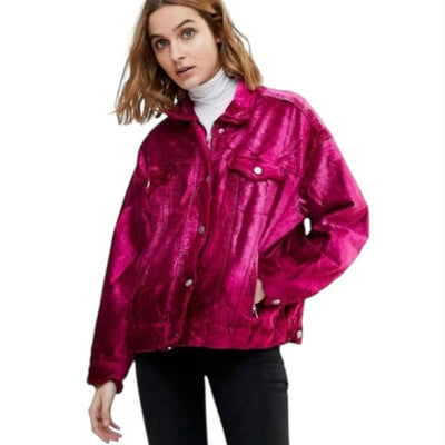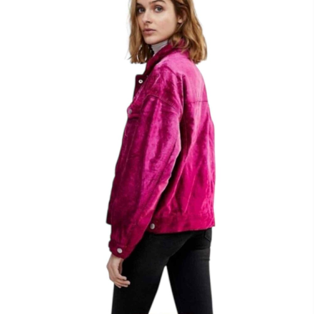 Free People Velvet Trucker Jacket in Fuchsia - Size XS/S
