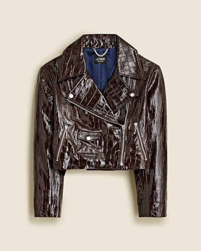 J Crew Collection Moto Jacket in Croc-Embossed Leather Jacket - Size XS