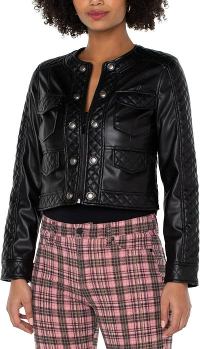 Liverpool Vegan Leather Quilted Scoop Neck Jacket - Size Medium