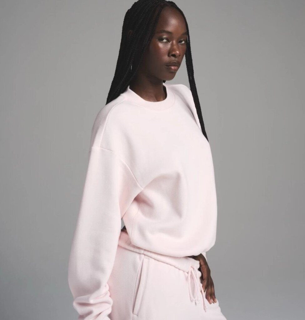 Skims Pink Cotton Fleece Classic Crewneck Pullover - Size Medium