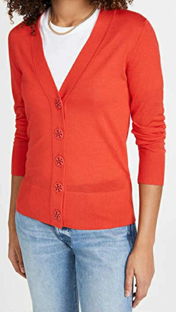 Tory Burch Simone Button-Front Cashmere Cardigan in Red (Retails for $350) - Size Medium