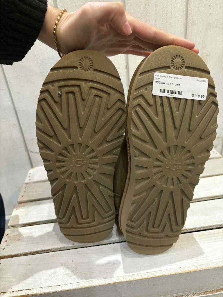 {"id":47017327755503,"title":"7 \/ Brown","option1":"7","option2":"Brown","option3":null,"sku":"7FY79T-9259","requires_shipping":true,"taxable":true,"featured_image":{"id":45611725291759,"product_id":9122749317359,"position":1,"created_at":"2025-10-27T14:06:16-04:00","updated_at":"2025-10-27T14:06:18-04:00","alt":null,"width":820,"height":1024,"src":"\/\/www.chicboutiqueconsignments.com\/cdn\/shop\/files\/1761588025450X4AYHY9RSG2KM1EB7EIQ.jpg?v=1761588378","variant_ids":[47017327755503]},"available":true,"name":"Ugg Neumel Platform Zip Suede Booties - Size 7 - 7 \/ Brown","public_title":"7 \/ Brown","options":["7","Brown"],"price":11899,"weight":907,"compare_at_price":null,"inventory_management":"shopify","barcode":null,"featured_media":{"alt":null,"id":37258257989871,"position":1,"preview_image":{"aspect_ratio":0.801,"height":1024,"width":820,"src":"\/\/www.chicboutiqueconsignments.com\/cdn\/shop\/files\/1761588025450X4AYHY9RSG2KM1EB7EIQ.jpg?v=1761588378"}},"requires_selling_plan":false,"selling_plan_allocations":[]}