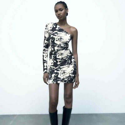 Zara NWT Printed One Shoulder Mini Dress - Size Small